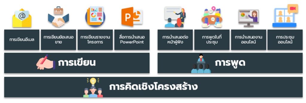หลังจากสถานการณ์โควิด เราปรับตัวให้เหมาะกับยุค New Normal โดยหลักสูตรฝึกอบรมด้านการสื่อสารที่เราสอนแบบมีโครงสร้างจะช่วยให้ผู้เข้าอบรมสามารถทำงานในทุกสถานการณ์ทางธุรกิจ ซึ่งเราปูพื้นฐานความคิดที่แข็งแกร่งเพื่อการสื่อสารที่มีประสิทธิภาพ